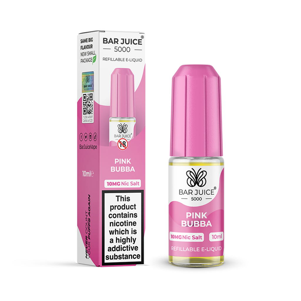 When you load your vape kit with Bar Juice Pink Bubba 20mg Nic Salt 10ml E-Liquid, get ready for an explosion of strawberry sweetness that rivals the iconic bubblegum without the jaw power. Elevate your vaping escapade with Pink Bubba Vape Bar Liquid, and chill in a pink haze of delight.