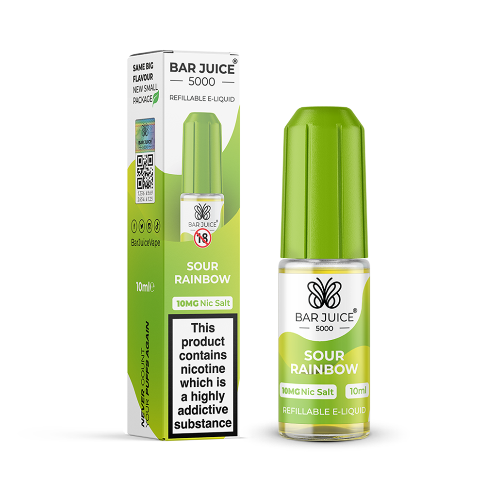 Don’t be a sourpuss, load your vape kit with Bar Juice Sour Rainbow 20mg Nic Salt 10ml E-Liquid, and brace yourself for a pucker-up moment that echoes the iconic Sour Rainbow chewies. With Sour Rainbow Vape Bar Liquid, fun and sour mischief collide in a mouth-puckering delight and we’re sure you’ll still find the pot of gold after all.